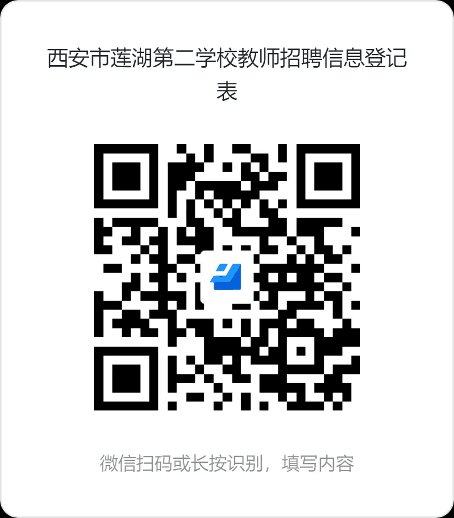 1.报名:应聘人员扫描二维码在线填写《教师应聘信息登记表》并将个人简历送至西安市莲湖第二学校传达室。