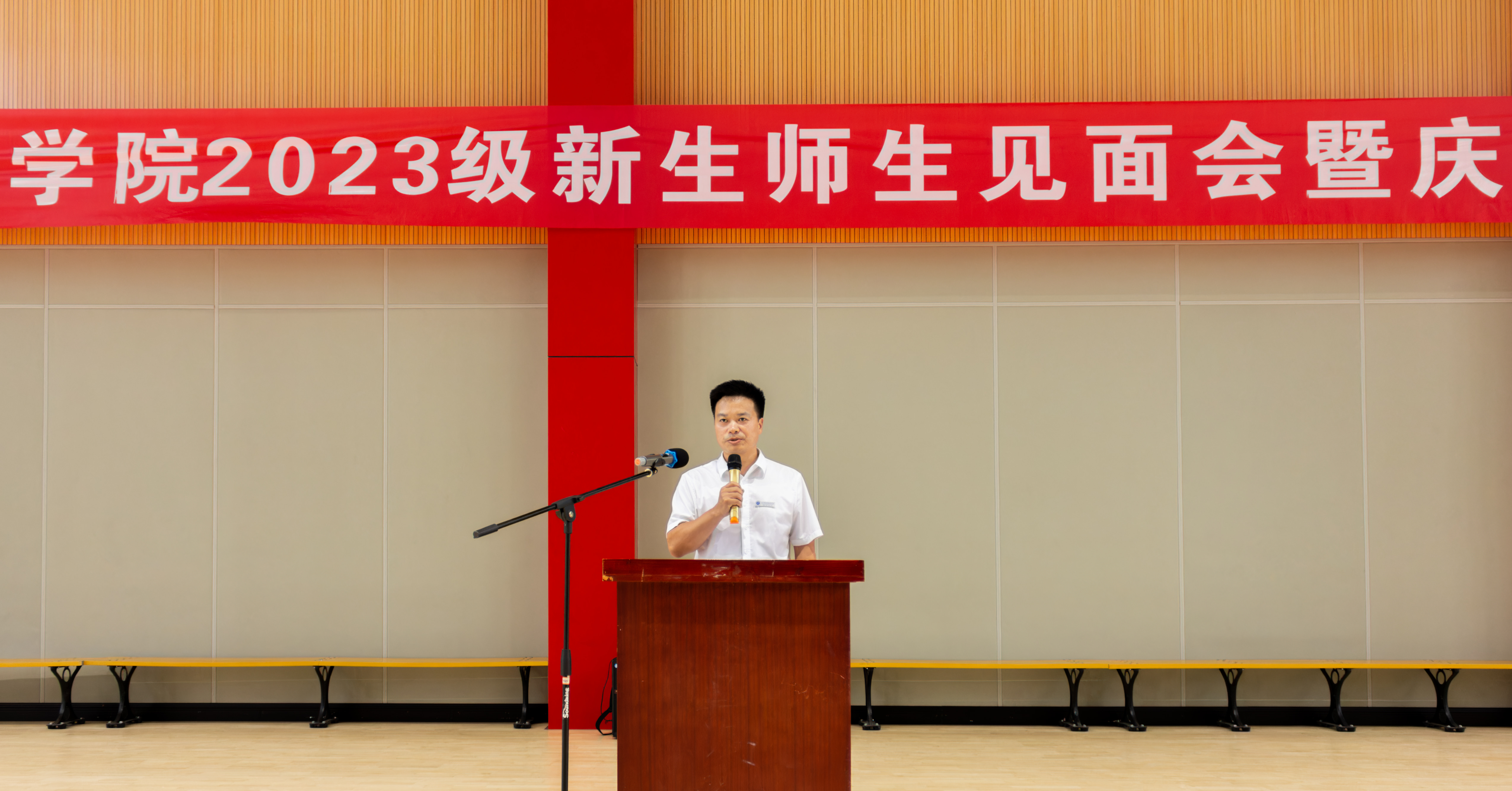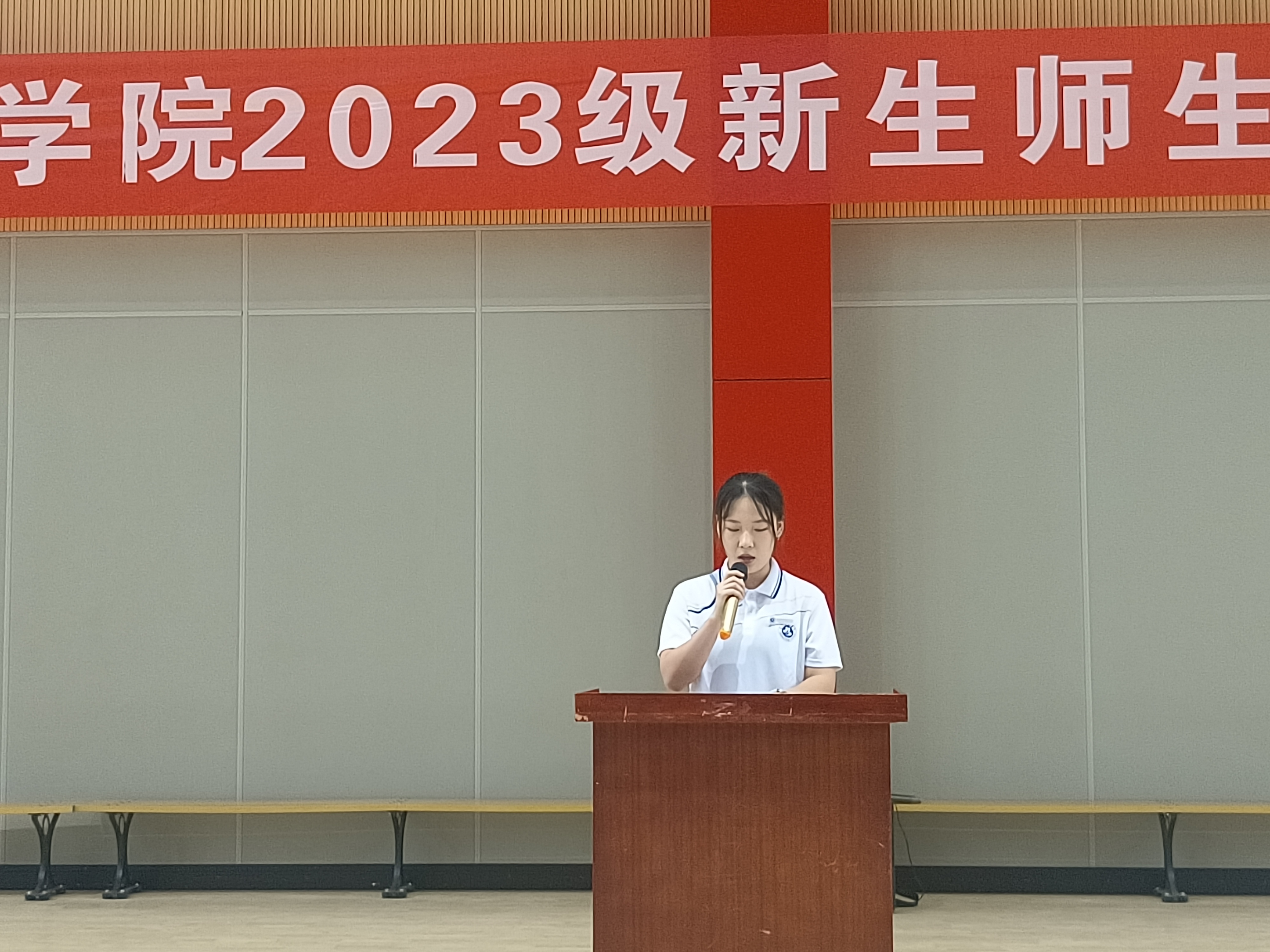 学生干部代表欧阳世乐从自身的大学经历向全体新同学致欢迎辞;社体2301班付宇航代表新生发言,表明了大学生活的努力方向。青年教师代表付丽嘉博士以个人成长故事勉励新生,希望新同学能够沿着个人规划的道路,坚持下去,恪守初心,坚定信仰,用拼搏的汗水去创造美好的未来。