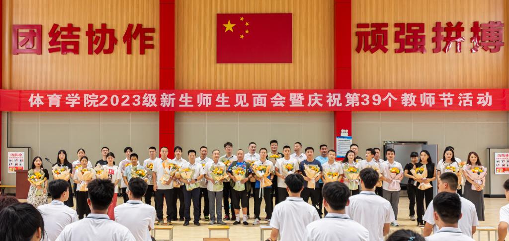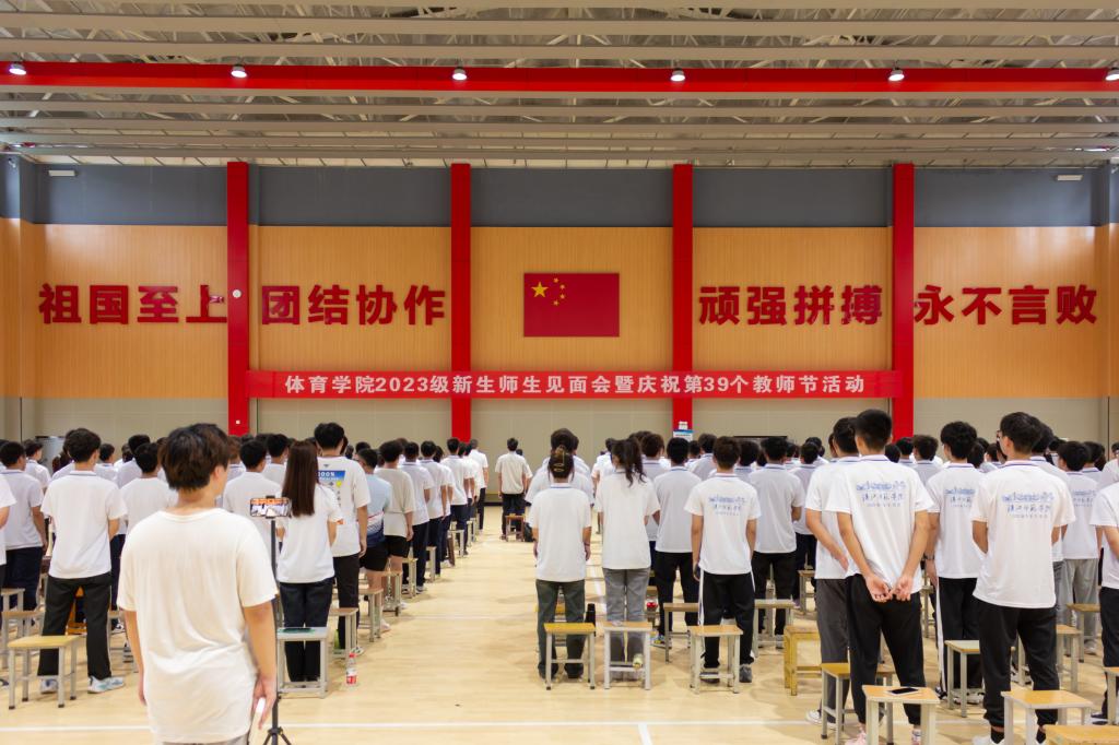9月10日,我院精心策划并在体育馆召开2023年师生见面会暨庆祝第39个教师节活动。 vwin德赢ac米兰官网教职员工、2023级新生及vwin德赢ac米兰官网五大学生组织干部参会。学工办主任王歆辰主持活动。