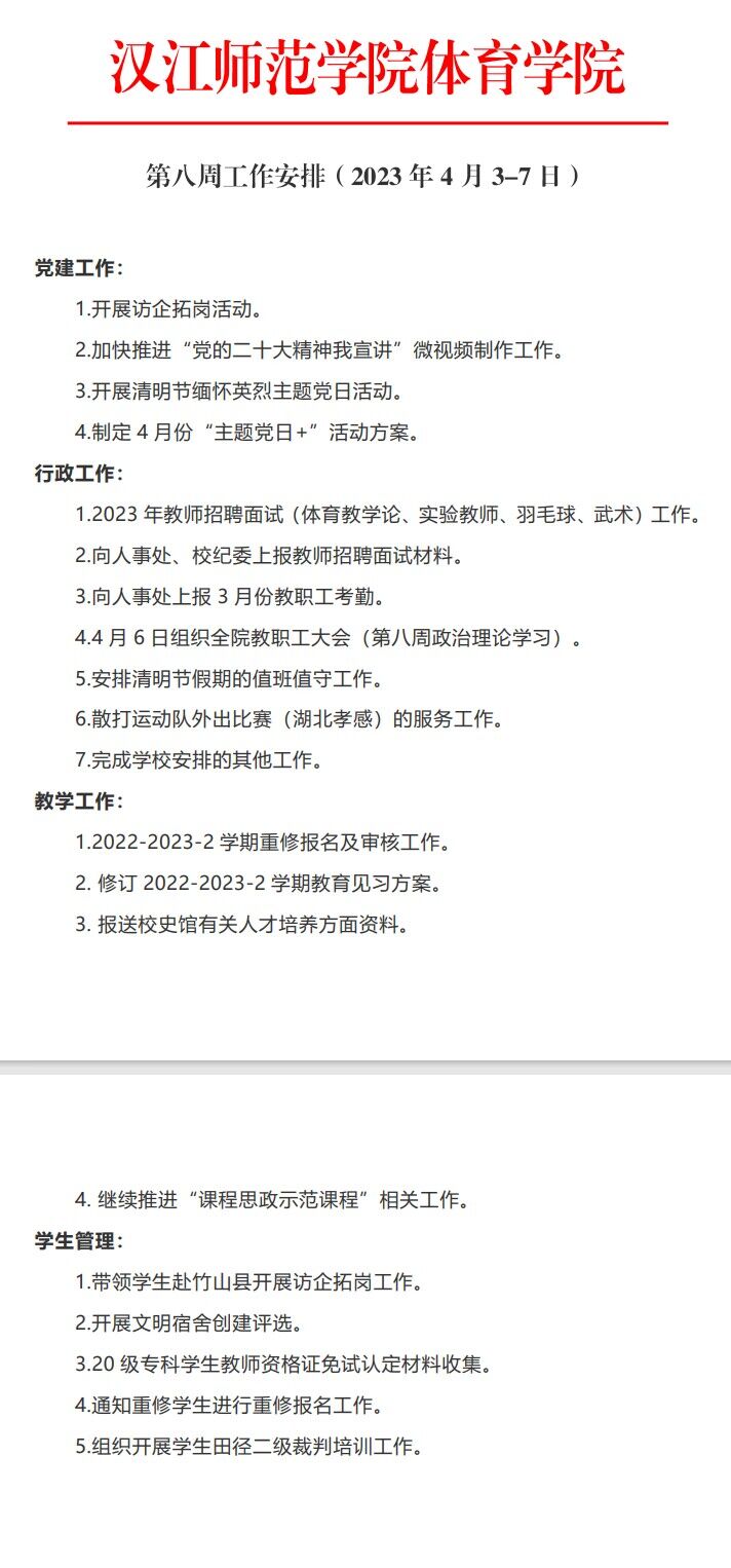 vwin德赢ac米兰官网第八周工作安排(2023年4月3-7日)