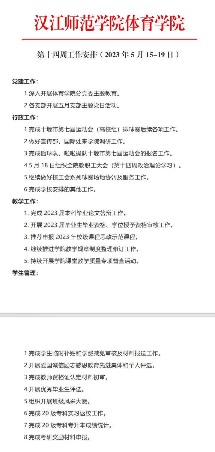vwin德赢ac米兰官网第十四周工作安排(2023年5月15-19日)