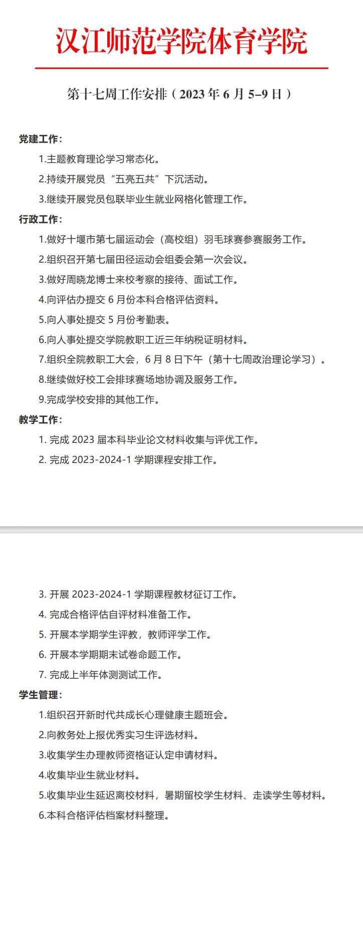 vwin德赢ac米兰官网第十七周工作安排(2023年6月5-9日)