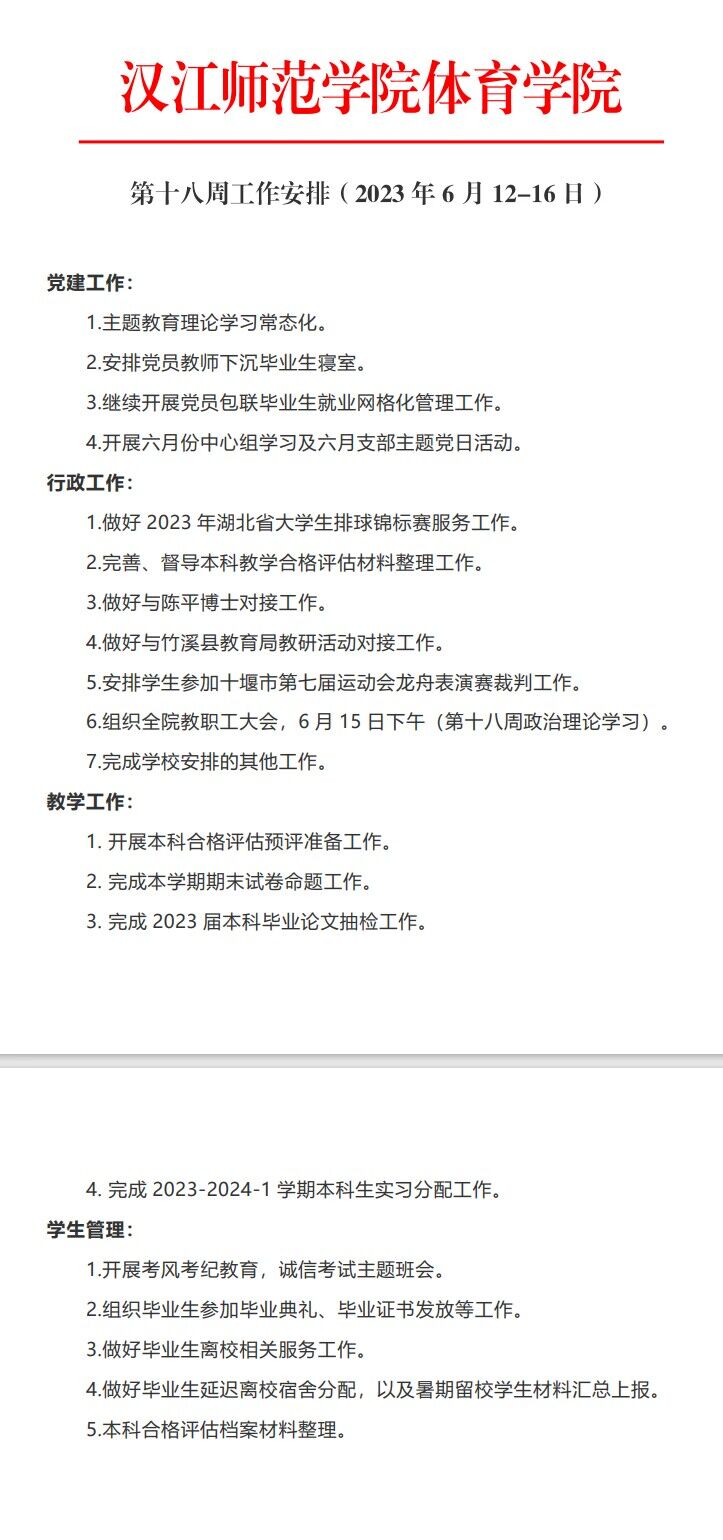 vwin德赢ac米兰官网第十八周工作安排(2023年6月12-16日)
