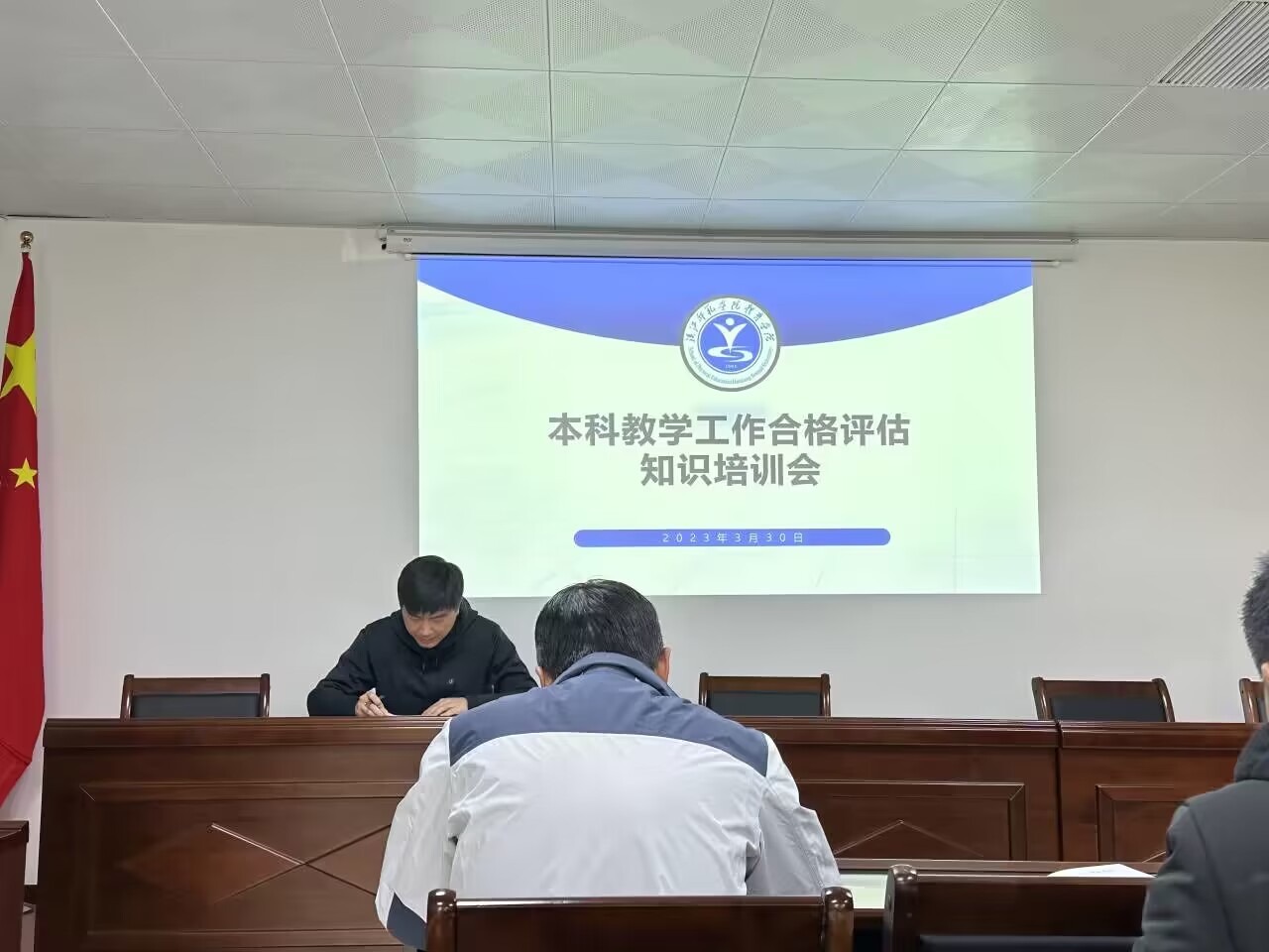 3月30日下午,vwin德赢ac米兰官网在体育馆二楼教师技能实训室举行第一期本科教学工作合格评估知识培训会。全体教职工参加培训。