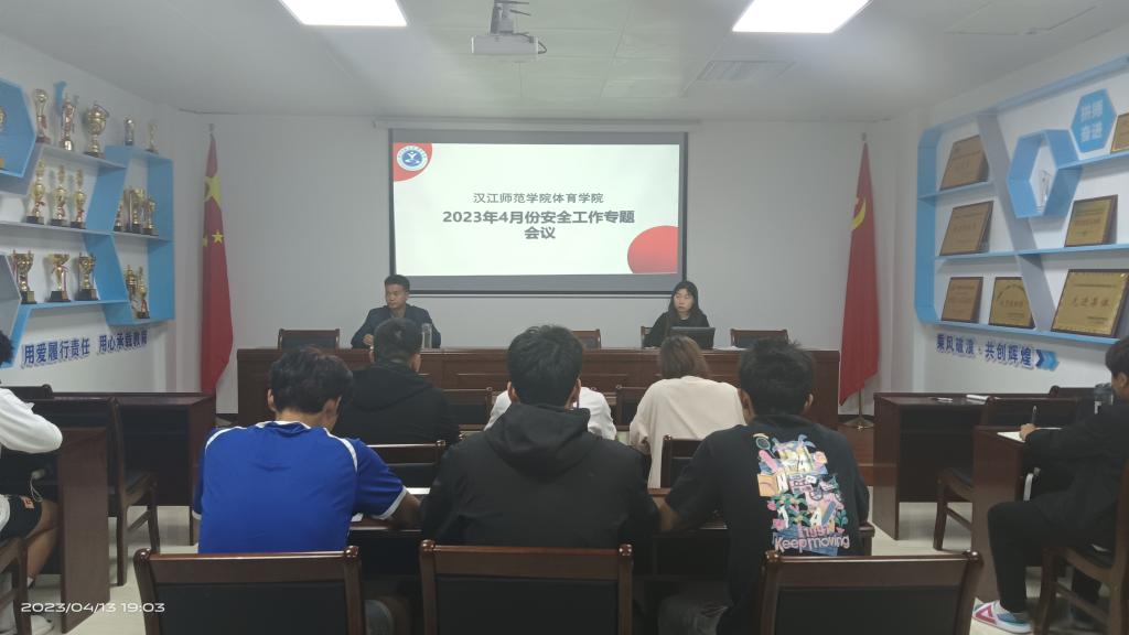 4月13日,我院在体育馆会议室召开4月份安全工作专题会议。各班级、各组织负责人参会,vwin德赢ac米兰官网分党委书记赵盛国出席会议,辅导员陈文娜主持。
