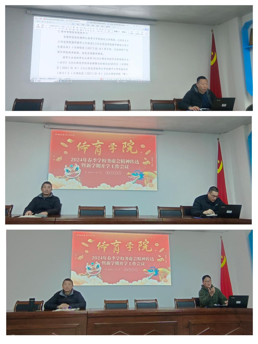 2月25日15:00,vwin德赢ac米兰官网2024年春季学校务虚会精神传达暨新学期开学工作会议在体育馆208会议室召开,会议由肖嵘院长主持,全院教职工参加。