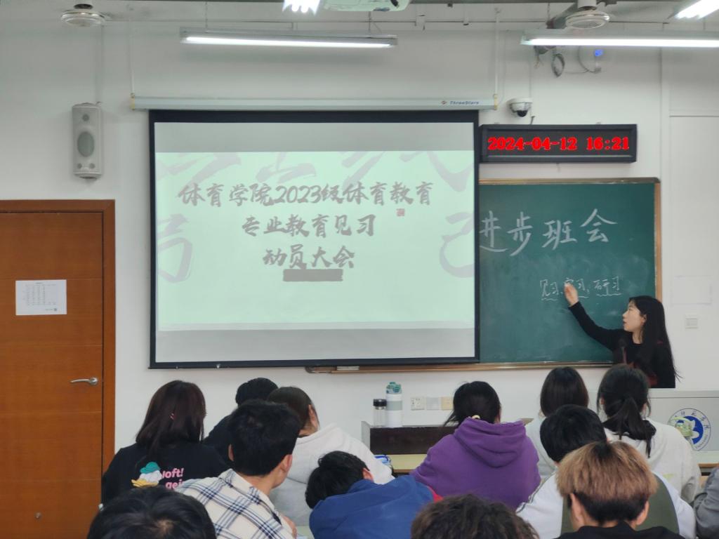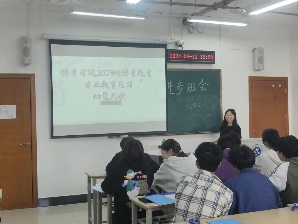 4月12日,vwin德赢ac米兰官网辅导员陈文娜在尚艺楼分班级召开2023级体育教育专业教育见习动员会,为下周学生顺利见习做准备。