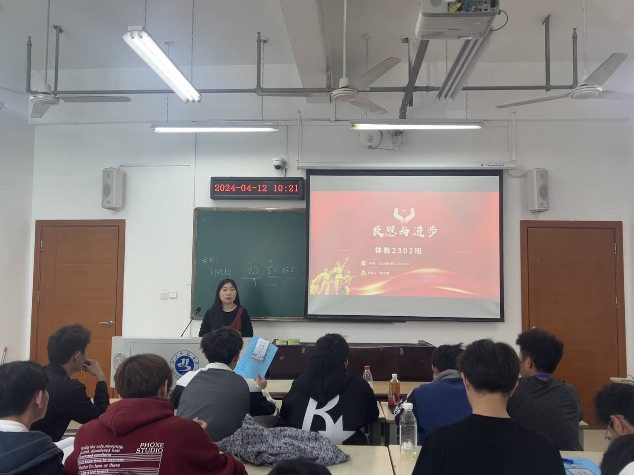 知不足而奋进望远山而前行。为引导学生正确认识自我,加强自我反思,明确自身进步与不足,4月12日,辅导员陈文娜分别在尚艺楼A303、302教室,为体教2301、体教2302班主持召开“反思与进步”主题班会。