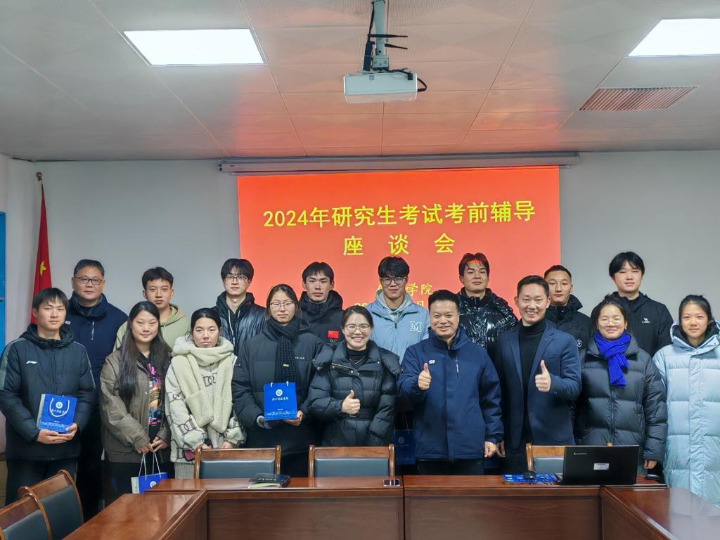 座谈会邀请体育教育专业负责人张永朋博士为考研学子做考前辅导。张博士从考研形势分析、目标设定与规划、复习策略与技巧、心理调适与压力管理、考试技巧与注意事项、生活与健康等六方面给大家提出专业性建议。