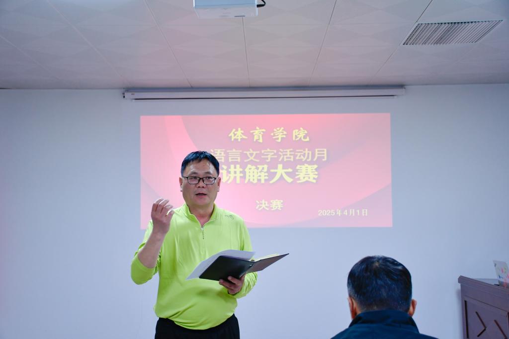 本次比赛,共有14 位同学在初赛中脱颖而出,晋级决赛。在决赛现场,选手们个个精神饱满,热情洋溢。他们以生动的语言、饱满的情绪为观众们呈现了一场场精彩绝伦的体育讲解盛宴。篮球赛场上那激烈的对抗,球员们你争我夺,每一次运球、每一次突破、每一次跳跃,都充满了力量与激情;田径赛道上风驰电掣般的速度比拼,运动员们如离弦之箭,用汗水和拼搏诠释着速度的极致;足球绿茵场上队员们默契配合,传球、跑位、射门,每一个动作都凝聚着团队的力量与智慧;健身健美舞台上则是力量与美感的完美融合,选手们用健美的肌肉、优雅的姿态,展示着健康与力量的和谐之美。这些激动人心的比赛画面都在选手们的解说中展现的淋漓尽致,选手们用生动的语言、精准的描述,将比赛的每一个细节、每一个精彩瞬间传递给观众,让观众仿佛置身于赛场之中,感受着运动员们的拼搏与汗水、速度与激情。