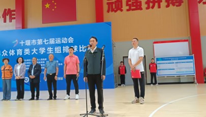 开幕式上,校领导於全收致开幕辞,他指出体育赛事是技术的较量,是交流的平台。此次运动会四年一届,是全市规格最高、规模最大、竞争最激烈、影响最广泛的体育盛会,是对十堰全民健身运动成果的一次大检阅,必将推动十堰市文化体育事业的大发展。希望本届运动会大学生排球组比赛,能够加强十堰高校之间的联系与合作,在比赛中交流,在交流中学习,在学习中提高,在提高中共同创造十堰市体育事业的辉煌。