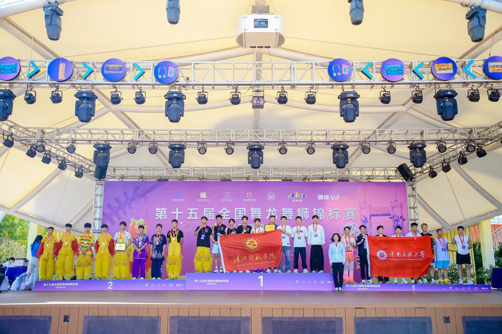 最终,我校龙狮队在“北狮竞速”项目中取得第一名、在“北狮规定”项目中取得第六名的好成绩,该成绩可申请认定“舞龙舞狮一级运动员”。